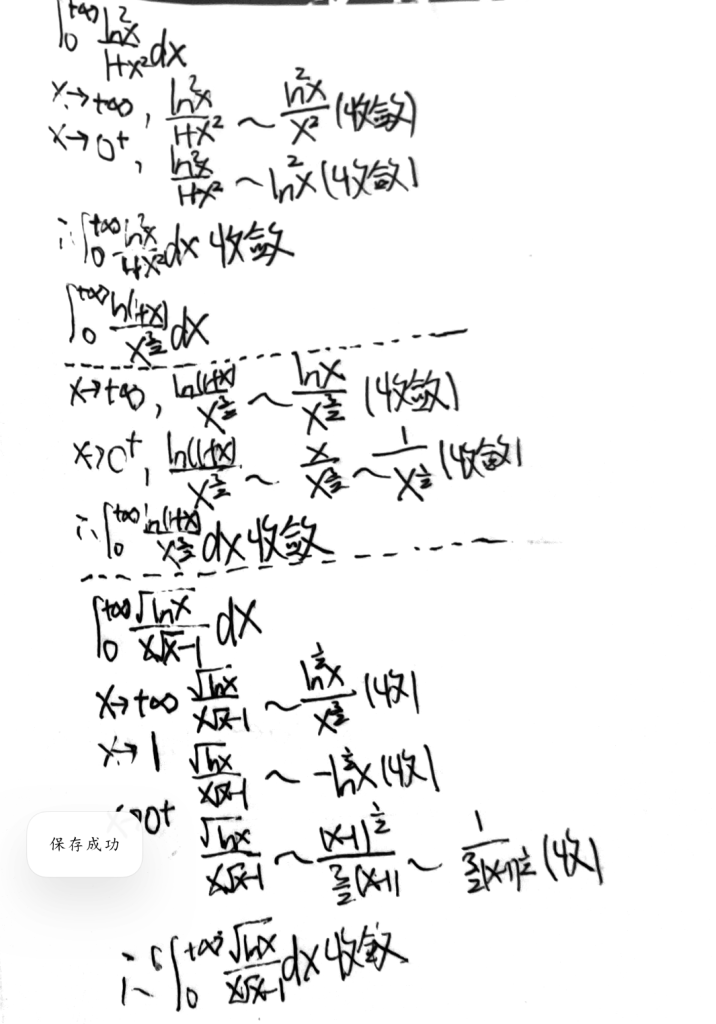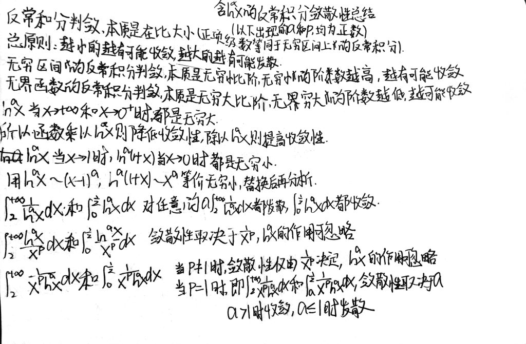 含有lnx的幂函数比较特别点,在这里有如下的敛散性总结,可以实现秒杀😂