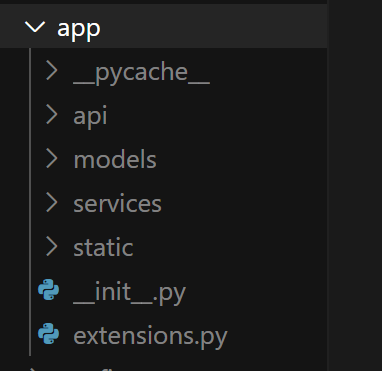 app目录是flask的核心应用目录,里面主要包括了api目录,models目录、services目录、static目录,还有初始化应用文件和扩展文件:
